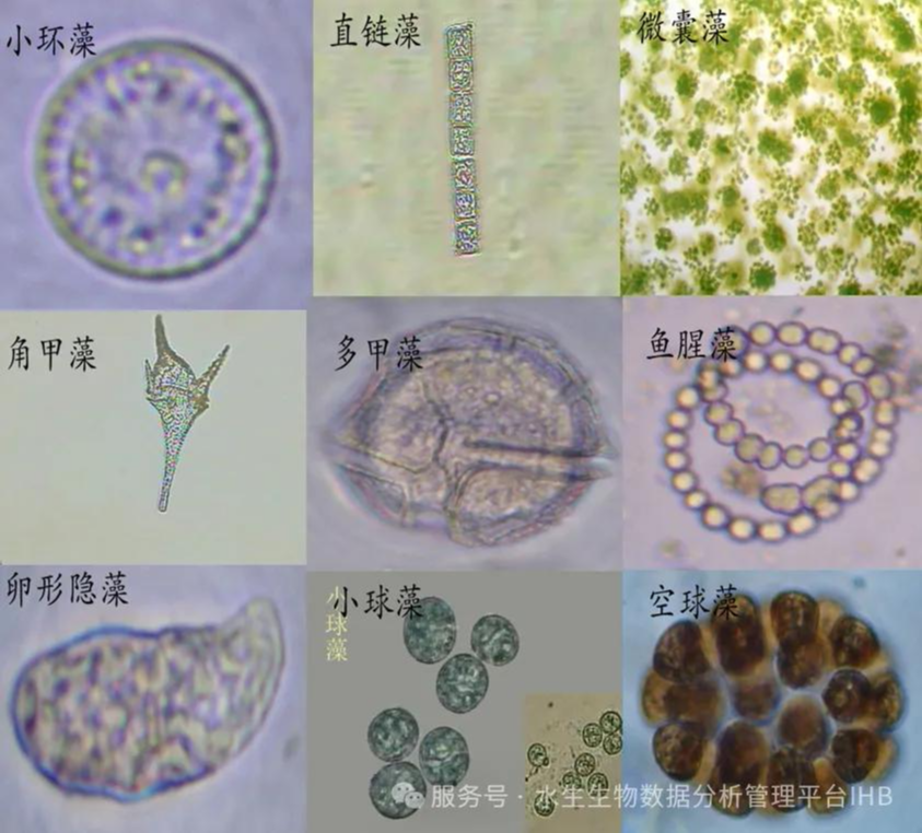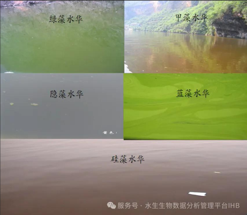 水华的种类、形式多样。按照形成藻类水华的优势种群可分为蓝藻水华(常见有微囊藻水华、浮丝藻水华、假鱼腥藻水华、拟柱孢藻水华等)、硅藻水华(常见有小环藻水华、直链藻水华、脆杆藻水华、针杆藻水华等)、绿藻水华(实球藻水华、栅藻水华、团藻水华、刚毛藻水华等)、甲藻水华、裸藻水华、金藻水华等。按照水华在水体发生的位置,也可分为表层水华(藻类喜欢在表面聚集)、弥散型水华(藻类在水体上下混合比较均匀)、底栖型水华(藻类在水体底部,比如着生藻类水华)。总之,由于藻类的种类很多,形成水华的藻类也很多,不同藻类形成水华的垂向位置也不一样。有些藻类受光照影响可以在水体上下移动,比如甲藻和裸藻的一些种类,受光照影响,不同时段水体可能呈现不同的颜色,是不是很神奇!三峡支流水华多样,如果你在春季水华高发季节在山顶上俯瞰水库,发现不同支流的颜色不一,不要惊讶,那是藻类造成的颜色差异!