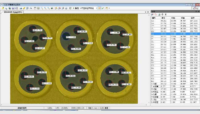 5、测量功能:全自动尺寸标定,也可人工标定。可鼠标拖动精确测量长度、角度、弧度、面积、弧线、任意曲线。
