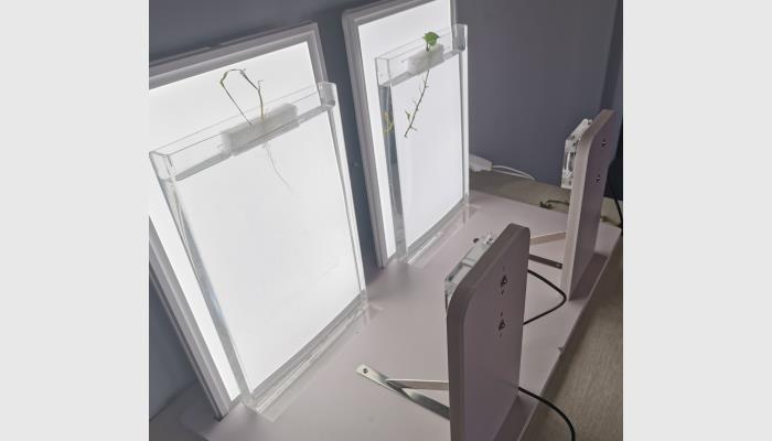 2、实时监测4个视野的水培作物植株,标配4套动态生长监测拍照成像硬件(含4个240mm 宽*380mm高的透明培养扁盒)。